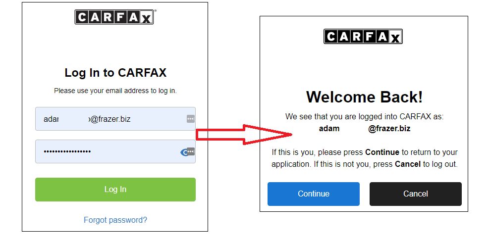 You will be prompted to log in (if your credentials for CARFAX are not already saved on this PC). You will use the same credentials that you normally use to log into your CARFAX account.