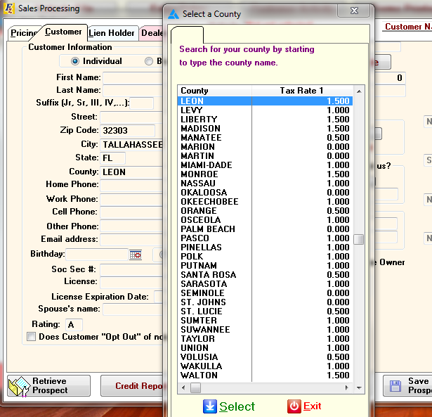 Frazer Tax Rates for Florida are pre-set.