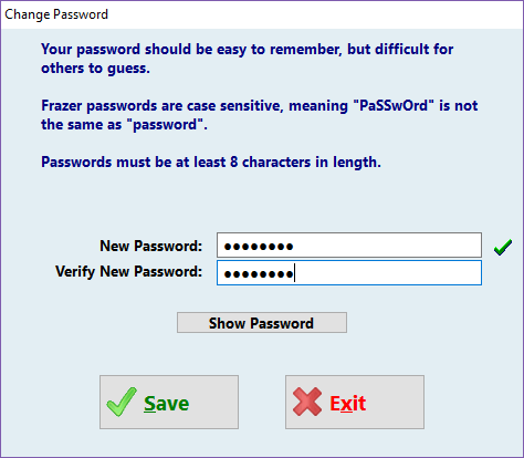 Since the Frazer Sidekick app takes advantage of exciting new cloud features, you must setup enhanced password system first.