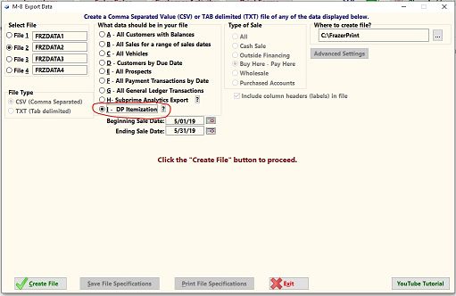 1) A spreadsheet has been added in M-8 Export Data which will allow you to provide the auditor with the down payment itemization indicating nontaxable charges for any range of dates.